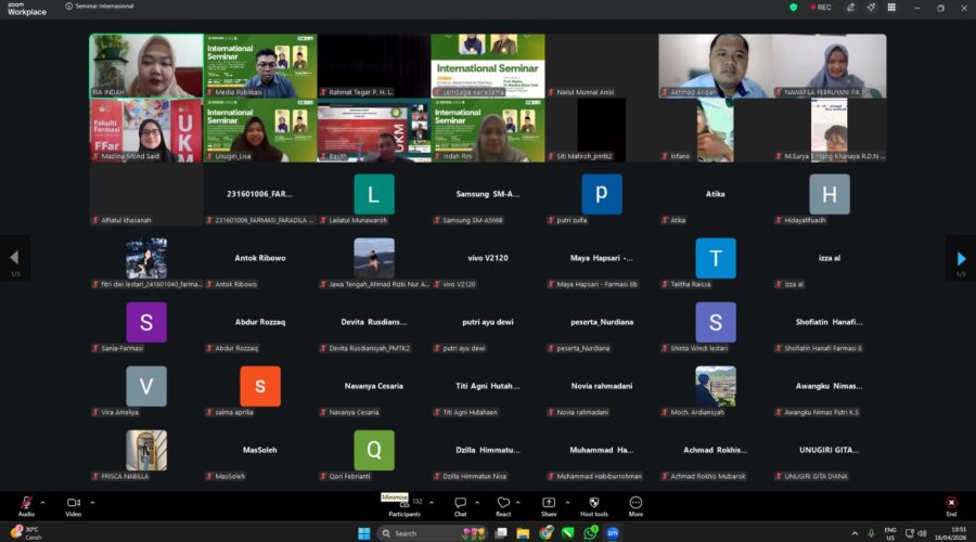 unugiri.ac.id Bojonegoro – Universitas Nahdlatul Ulama Sunan Giri (UNUGIRI) Bojonegoro bekerja sama dengan Universiti Kebangsaan Malaysia (UKM) menggelar webinar internasional bertajuk “Evidence-Based Industrial Pharmacy Development: From Natural Product Authentication to Advanced Drug Delivery Systems” pada Kamis, 16 April 2026. Kegiatan yang dilaksanakan secara daring ini menghadirkan akademisi dari kedua institusi dan diikuti oleh mahasiswa serta umum. Seminar mengangkat tema “Evidence-Based Industrial Pharmacy Development: From Natural Product Authentication to Advanced Drug...Read More