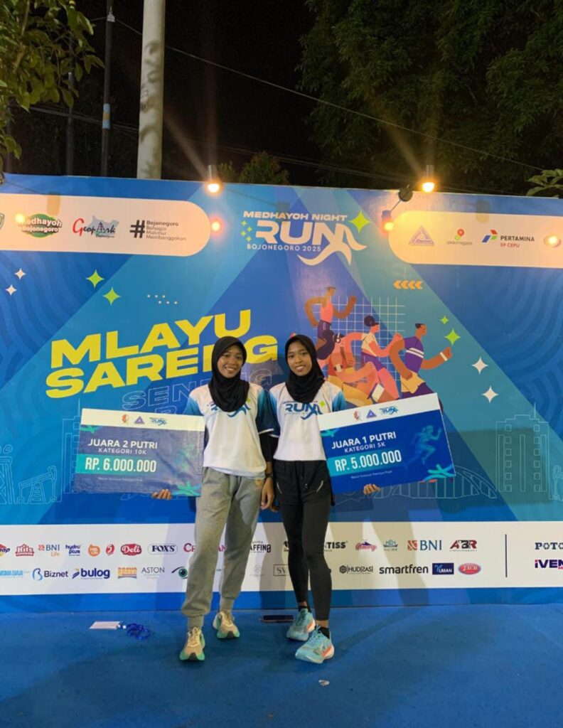 unugiri.ac.id Bojonegoro – Dua mahasiswi Program Studi Pendidikan Jasmani, Kesehatan, dan Rekreasi (PJKR) Universitas Nahdlatul Ulama Sunan Giri (UNUGIRI) kembali menyabet prestasi di ajang olahraga. Dalam event Medhayoh Night Run Kabupaten Bojonegoro 2025, yang digelar Sabtu malam (01/11) di Alun-Alun Bojonegoro, Amali dan Ameli berhasil meraih Juara 1 dan Juara 2.